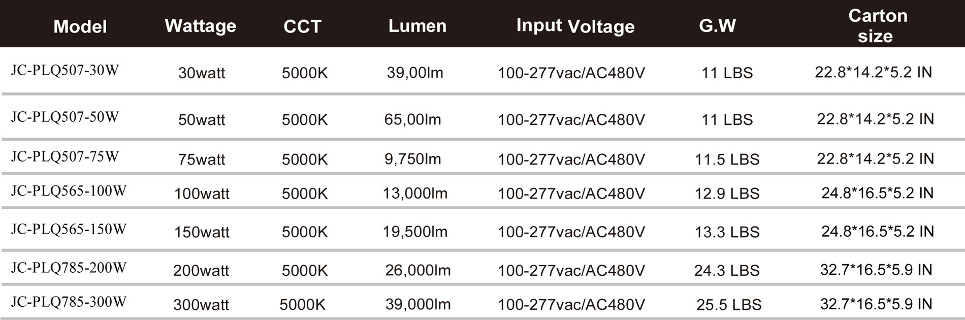 - Lifespan:>54000 hours (@Tc=176°F)